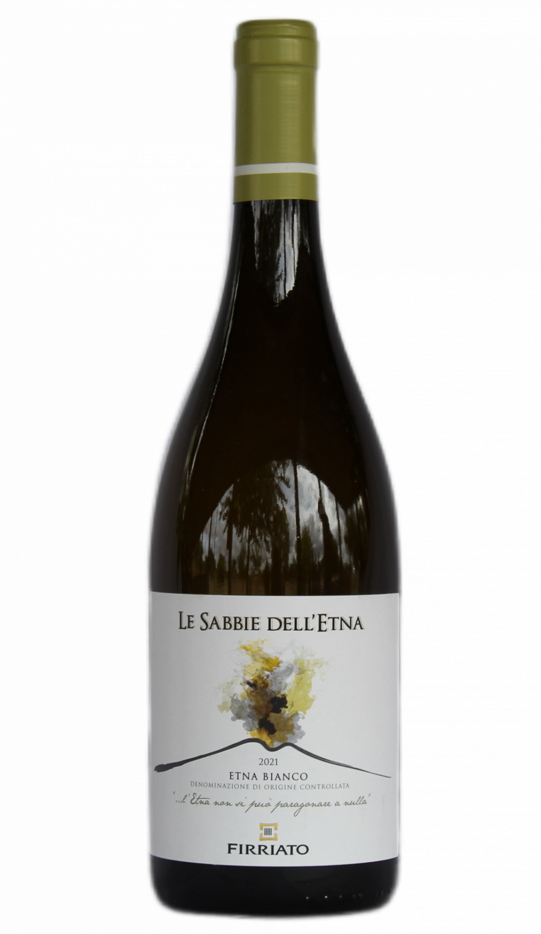 Le Sabbie dell 'Etna Etna Bianco DOC by Firriato is of straw yellow color with greenish reflections. The powerful bouquet is convincing with pronounced floral notes of yellow mimosas and broom, which wonderfully underline the fruity nuances of ripe pears and white peach. On the palate, this Sicilian white wine from Etna unfolds a full aroma with long-lasting, spicy taste. Persistent freshness fills the mouth and gives it its unique character, characterized by the grape varieties.