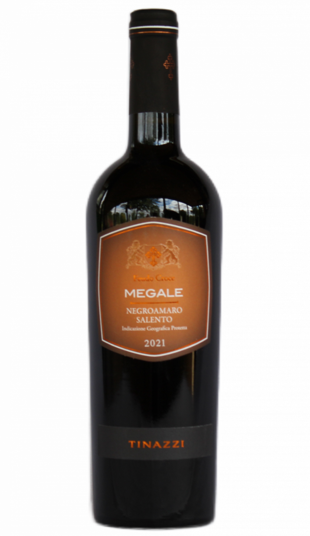 100% Negroamaro del Salento, grapes from vineyards owned by the Tinazzi family in the Taranto province. They are selected and harvested by hand, then they are crushed and destemmed, macerated and fermented at a controlled temperature of 22-26°C for 8-10 days and soft pressed.
